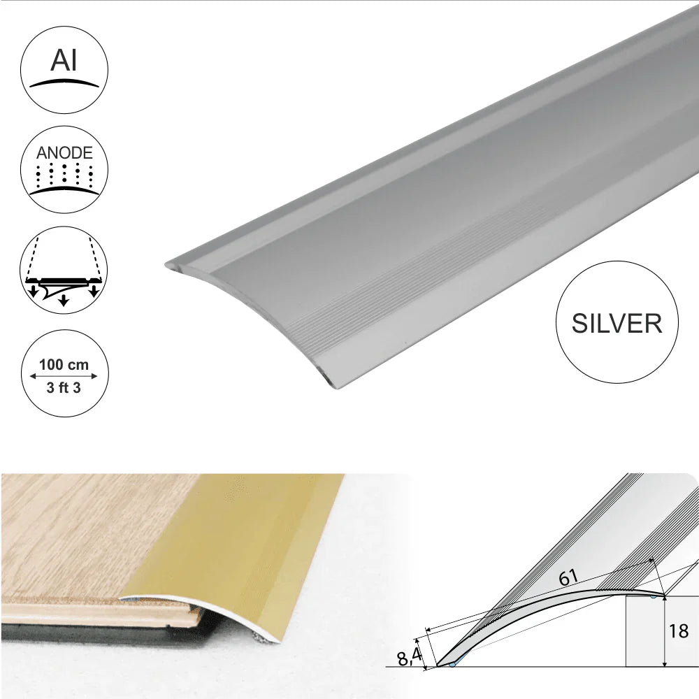 Check out our Self-Adhesive Anodised Aluminium Floor Trim, designed to seamlessly bridge floor transitions between wooden, laminate, vinyl, or tiled surfaces with a height difference of up to 18mm. This product features a convenient one-step tape assembly, offering a quick, no-drill installation.
